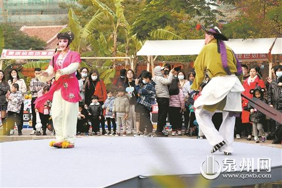 元旦期间,晋江梧林传统村落文艺气息爆棚,一场致敬医护天使的“倾新梧林,心·守候”乐活音乐秀在枪楼广场精彩上演。来自泉州本地的音乐唱作人、草根达人为游客献唱了一首首抗疫赞歌;高甲戏、木偶戏等极具闽南风情的文艺演出也轮番上阵,奏响梧林“醉闽南”的热闹风情,吸引一拨拨热爱传统文化的游人驻足欣赏。在古厝前、在石板巷中,随处可见熙熙攘攘的创意市集和街头文艺表演,由真实梧林侨文化历史故事改编的沉浸式换装剧本杀——《梧林外传》也在元旦期间正式上线,吸引不少年轻人前来“尝鲜”。