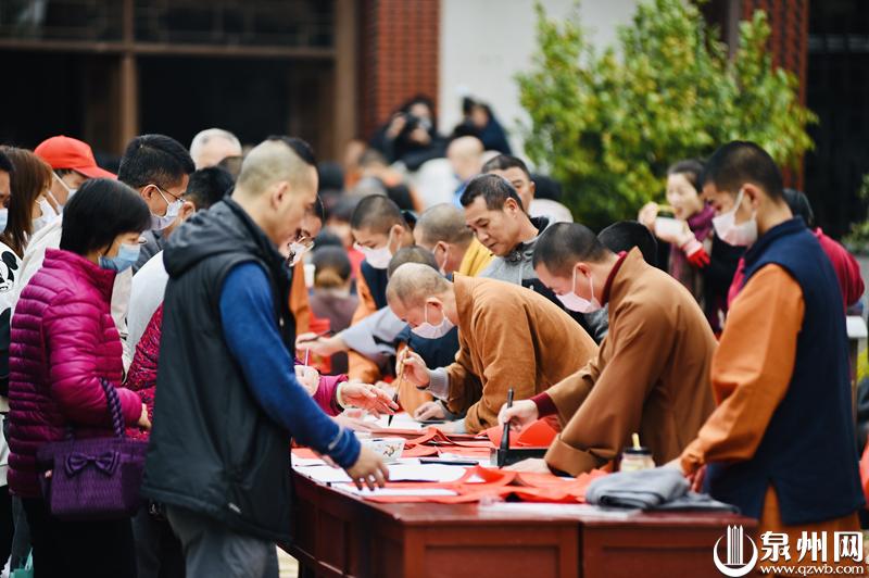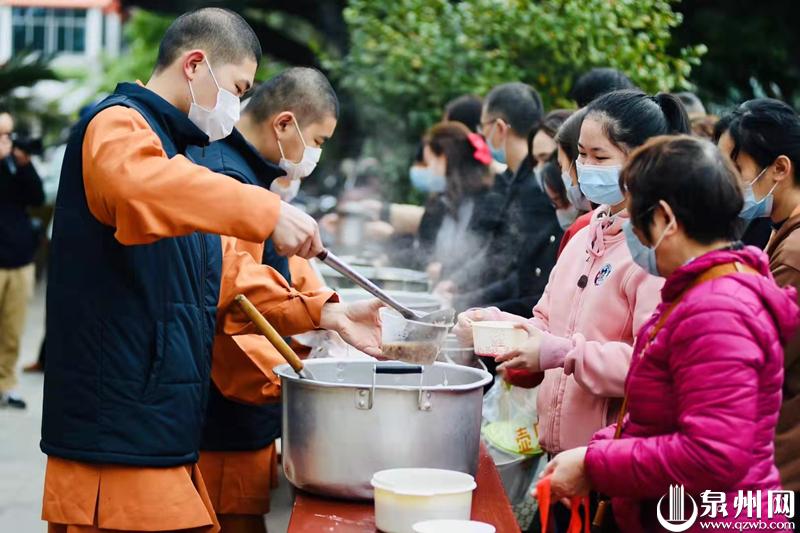泉州网1月10日讯 (记者朱远娥 通讯员理刚 文/图)俗语有云:过了腊八就是年。今日,泉州少林寺依照传统惯例举办的“腊八感恩”活动,向市民布施腊八粥,同时进行慈善义诊、赠送春联等活动。少林寺方丈常定大师带领僧众现场泼墨挥毫,为新的一年祈福。少林寺“腊八感恩”活动已经连续举办了16年,民众在一片热气腾腾中,感受到浓浓的节日气氛。