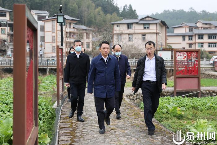 12日,省委常委、市委书记刘建洋前往德化县调研。图为走访国宝乡佛岭村。