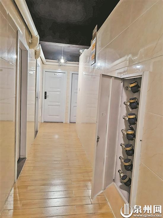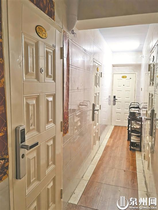 随后,记者来到草埕花园小区12号楼,所看的套房被改造成4个房间,左右各2间,每个房门均安装智能密码锁,中间是一条仅供一人通行的走廊,每个房间均独立设置水表和电表。黄先生说,每个房间有独立卫生间,其中两个房间太小,房东便把卫生间设在走廊,租户可以将卫生间上锁。