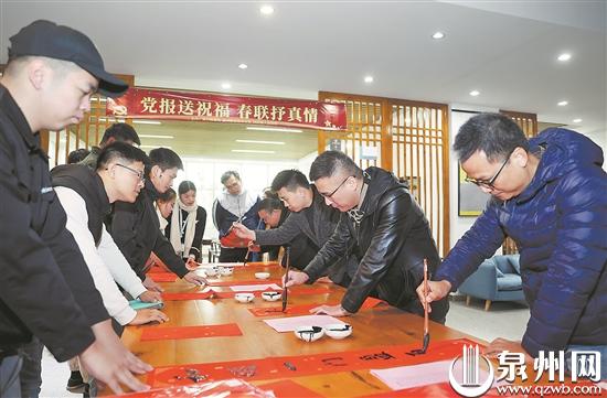 日前,2022年“党报送祝福 春联抒真情”活动走进泉州职业技术大学。这也是该活动首次在高校举行,7位青年书法家现场挥毫写就200多副春联,为学校师生和当地群众送去新春祝福。本场活动由泉州晚报社、泉州职业技术大学、晋江内坑镇人民政府等单位共同举办。
