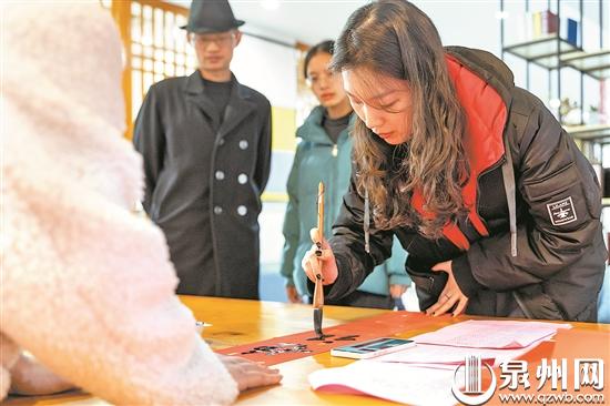泉州市青年书法家协会会长张文璟表示,这是党报送春联活动首次尝试走进泉州地面高校,书法家用喜庆的对联为师生们送上新春的美好祝福,同时也让大家现场感受到中国书法的传统魅力和浓郁的节日气息。