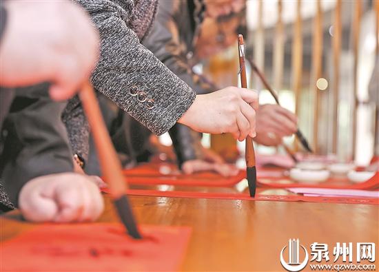 “用毛笔写的春联特别有年味,这样的活动很有意义。”来自河南的李红云老师说,在泉州生活了4年,深深感受到泉州浓浓的年味。来自石狮的廖南英老师一下课就赶来活动现场,她对手写春联情有独钟,“把它们贴在古大厝上别有一番风味”。