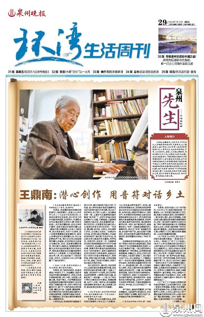 王鼎南:有人笑称我是“咱泉州、也是咱省内歌曲创作时间最长的一位音乐家”,此话可能不虚,因为与我同龄的许多音乐人业已离世。但我还不会停止创作,并且还想用更高效、更优质的方式去创作。我学会用微信,是因为我发现使用这一现代工具可以很方便地联系各地师友,对我的音乐创作有帮助。目前我在作曲时,常用微信与北京的作曲家龚耀年、词作家刘志毅、原南京军区政治部创作室主任荡逊,以及省市内的一些词友、曲友联系,与他们一起在线探讨创作,互相交流音乐方面的心得。一切为了创作,我是这么想的。与其说是我紧跟时代潮流,不如说是被潮流推着向前吧。但是用了这些现代化通讯工具,真的让我感受到了便利。