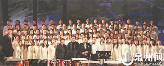 泉州合唱团1994年创建,我任团长,副团长有邓诗绵、柳元英、陈春莹,林志红担当常任指挥。为提高演出水平,先是邀请来陕西师范大学音乐系陈其明教授担任客座指挥,后又聘请著名指挥家秋里来泉开讲座及排练,接着还邀来福建师范大学音乐系陈明恩教授为团员进行培训。泉州合唱团的建立,使我们能把历届音乐专业毕业的人才组织起来,这其中包括很多高校和中小学的音乐老师。我认为,创建泉州合唱团对于扩大市音协影响、活跃泉州艺术、培养泉州年轻音乐人才是很有帮助的。在这里,我也要深深感谢曾经支持帮助过协会的领导与单位,以及合唱团的团员同志们。因为有了他们,才有泉州合唱团的那段辉煌。
