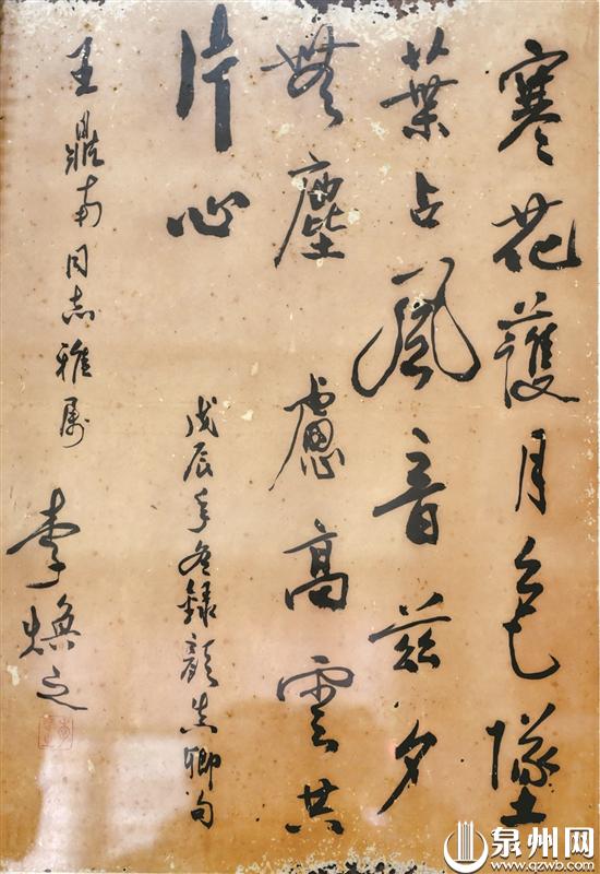 后来我计划出自己的第一本乡土歌曲专集《香满天下都是情》时,就拿初稿去给李焕之先生阅示,并请他题词鼓励。李焕之先生不仅给我题写了“用汗水培育芳草,为乡土奉献赞歌”的勉词,还另题了一幅颜真卿名句“寒花护月色,坠叶占风音。兹夕无尘虑,高云共片心”相赠。李焕之先生为人儒雅大度,真是音乐人的榜样。