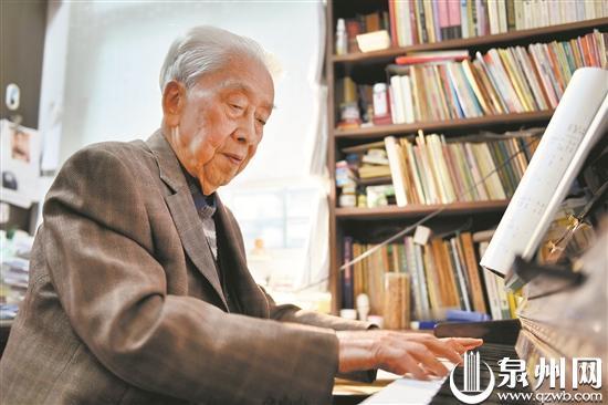 94岁的王鼎南,弹起钢琴来仍然很帅气。(木票 摄)