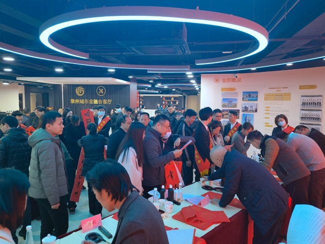 春节将至,为弘扬传统文化,营造节日氛围,1月13日,泉州金控集团工会、集团团委、闽侨公司工会在金控大厦三楼城市金融会客厅和泉州闽侨大厦正大门小广场联合开展了两场“迎新春 送春联”活动。十多名书法家现场挥毫泼墨,为广大职工和市民朋友送上了千副春联,提前送出新春祝福。