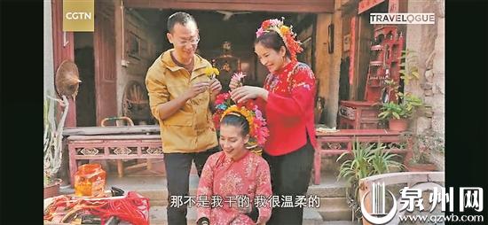 “这座城市的文化历史极大地影响了闽南菜系的形成,并远播东南亚。”走过西街,两位主持人坐上“小红”三轮车,与泉州留联副秘书长陈娴在关岳庙会合一起品尝泉州的古早味。看关岳庙与清净寺毗邻,两种宗教千年来“和谐相处”,连连发出感叹。熟悉的闽南语在英文对话中响起,陈娴带着远道而来的客人吃牛肉羹、炸醋肉、石花膏、肉粽,还有面线糊、润饼、姜母鸭等本地美食。镜头一转,主持人走进蟳埔渔村,梳起簪花围,亲自撬海蛎,烹制海蛎煎。