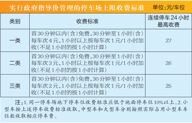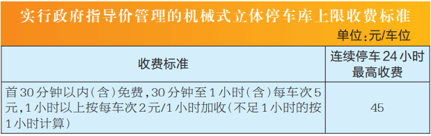 实行政府指导价管理的机械式立体停车库上限收费标准