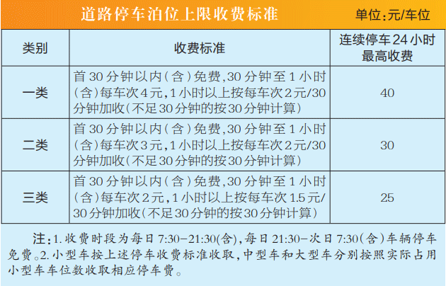 秉承“差别化收费”理念,新规建立了区域差别化、时间差别化、类型差别化的定价机制。一类区域适当提高停车收费标准,缓解中心市区停车压力,而二、三类区域则逐渐递减收费标准。此外,新规延续道路停车泊位每天21时30分至次日7时30分车辆停车免费的规定。