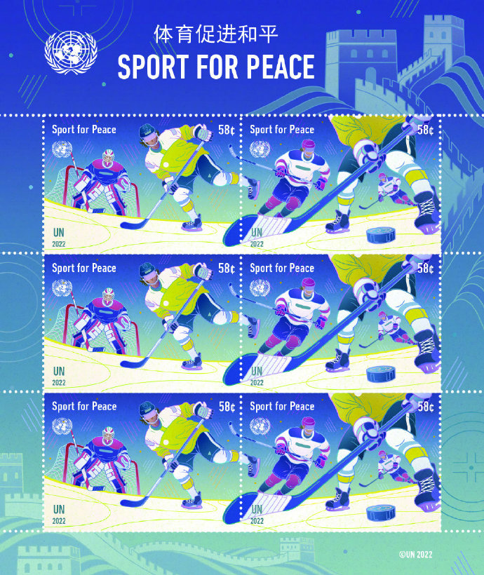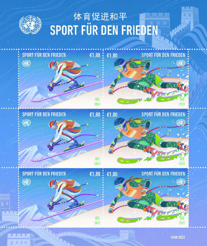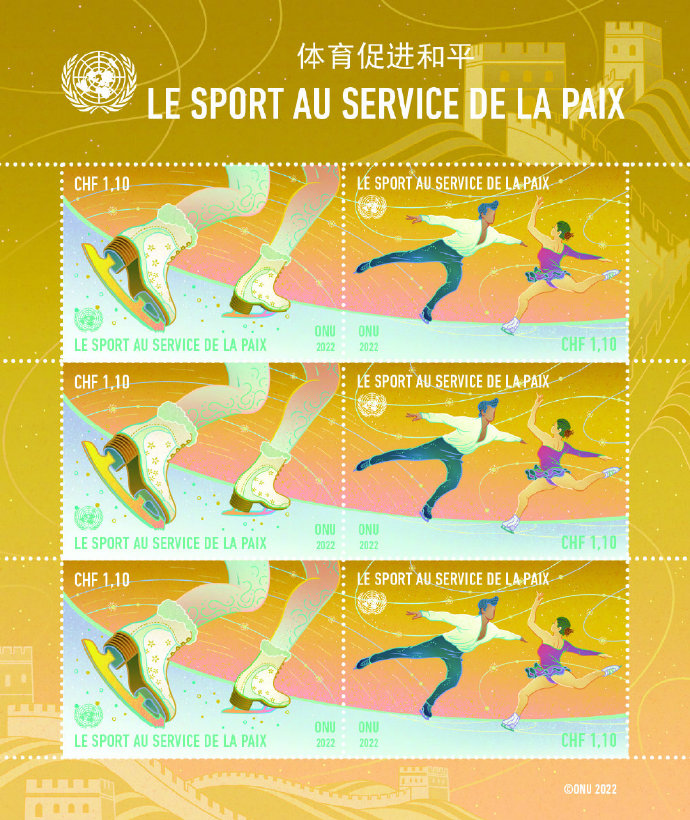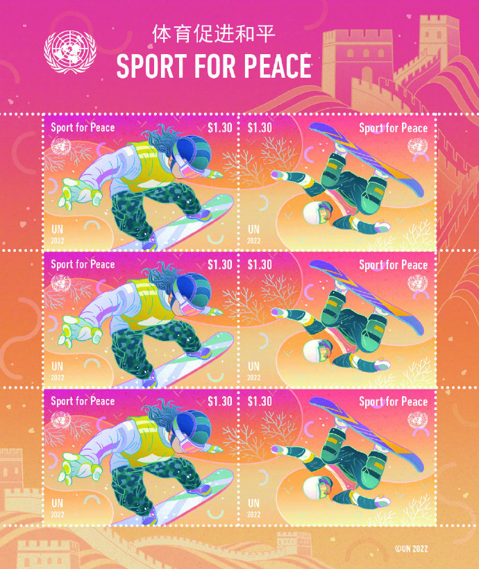 中新网北京1月16日电 联合国邮政管理局日前宣布,为庆祝北京冬奥会的召开,联合国将发行主题为“体育促进和平”的邮票。这也是联合国首次为冬奥会发行邮票。联合国邮政管理局表示,此次发行的邮票面值分别为0.58美元、1.30美元、1.10瑞士法郎、2.00瑞士法郎、0.85欧元和1.80欧元,分别展现了冰球运动员、单板滑雪运动员、花样滑冰运动员、雪车运动员、冰壶运动员以及高山滑雪运动员形象。据悉,这些邮票是由中国插画师阮菲菲绘制。