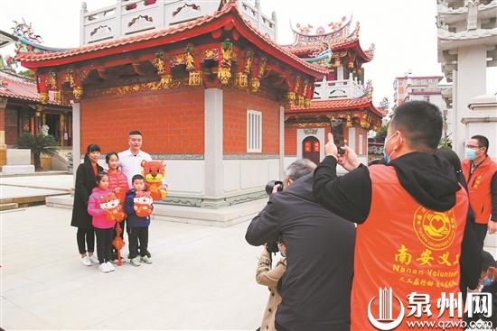 1月17日上午,南安金淘镇镇区金淘书院前热闹非凡,“新春走基层 送福进万家”志愿服务活动在这里举行。除了送春联外,主办方还请来摄影师为村民拍摄全家福。“靠近一点,笑一个。”摄影师耐心指导,随着快门声响起,一家人灿烂的笑容被定格。随后,一张张全家福现场洗成相片并装进相框送到村民手中。(吴志明 黄瑜琪 摄)
