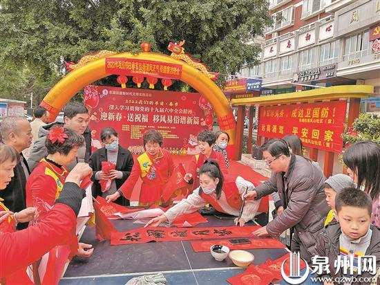 泉州网1月20日讯 (记者黄枫 通讯员潘素芳 文/图)1月18日上午,泉州市南渠供水有限责任公司联合凤山社区、泉州市山美灌区水资源调配中心开展“深入学习贯彻党的十九届六中全会精神”暨“迎新春·送祝福 移风易俗谱新篇”主题系列活动。