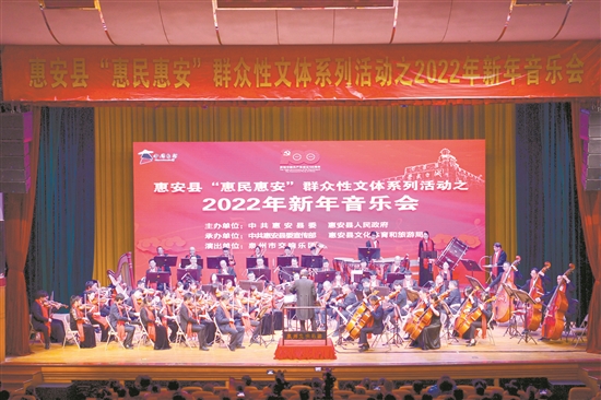 2021年12月28日晚,由惠安县委县政府主办,县委宣传部、县文旅局承办,惠安县“惠民惠安”文体系列活动之2022年《祖国万岁》新年音乐会在惠安县文化中心举行。全县干部群众和社会各行业代表齐聚一堂,在音乐的浸润中满怀新年美好向往。