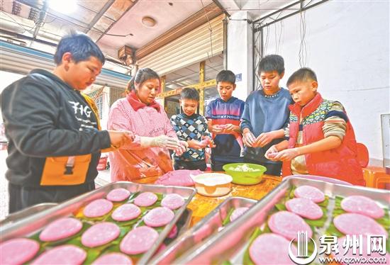 红团、口酥、糖粿、豆薏粿、海蛎饼、葱饼……春节前,泉港区各乡镇家家户户都忙着做各种传统美食。每当路过小巷深处人家的门口,各种香味扑鼻而来,童年里记忆中的年味便开始苏醒。男丁们打水、烧火、抬重物,妇女们揉捏面团、做各种口味的馅儿,孩童们跟着大人们一边玩耍一边帮忙,耳濡目染传承着过年的各种习俗。