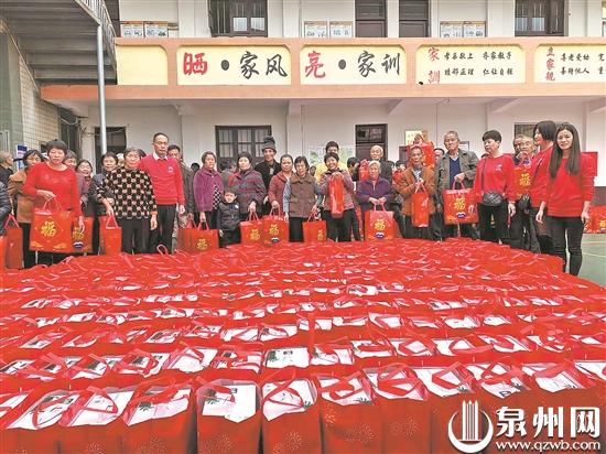 昨日,南安杏山村60岁以上的老人、保洁员和困难家庭都领到了一箱牛奶和一箱饮料,这是乡贤林育民捐赠的。林育民是一家公司的董事长,从2002年开始,每逢春节、中秋或国庆等节日,他就为家乡捐赠物资。(杨泳红 摄)