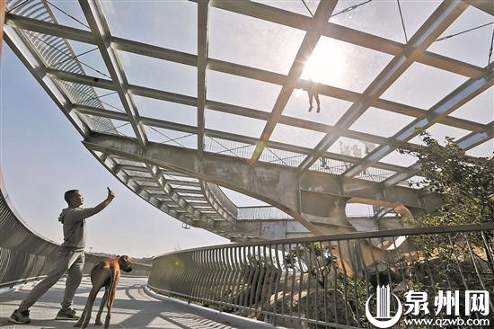 红色的自行车道、灰色的步行道、透明的玻璃栈道,一步一美景,构成了泉州的山线绿道。在这里,倚栏而立,轻扶帽檐,随便一拍,都是文艺美照。