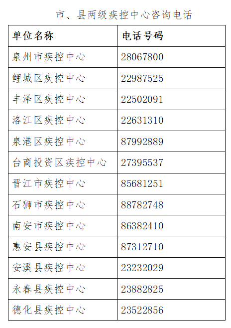 一、请有高中风险地区旅居史或与通报病例行程轨迹有交集的人员立即向所在社区(村居)或住宿酒店进行报备或主动拨打当地疫情防控咨询热线,配合属地政府落实医学观察、核酸检测等健康管理措施。高风险地区入(返)泉人员,严格落实14天集中医学观察措施,中风险地区入(返)泉人员,实施14天居家医学观察措施(不具备居家医学观察条件的,应转为集中医学观察),并在其医学观察期间第1、3、7、10、14天各进行一次核酸检测,解除时核酸检测参照入境人员核酸检测要求。中、高风险地区所在县(市、区)入(返)泉人员实施14天居家健康监测,其中,高风险地区所在县(市、区)入(返)泉人员第1、3、7、10、14天各进行一次核酸检测;中风险地区所在县(市、区)入(返)泉人员第1、3、14天各进行一次核酸检测。中、高风险地区所在地市的其他低风险区域入(返)泉人员配合做好查验健康码、测量体温等,未持有48小时核酸检测阴性证明的,立即进行一次核酸检测。健康管理起算时间请参照《高、中风险地区入(返)泉人员健康管理要求一览表》。