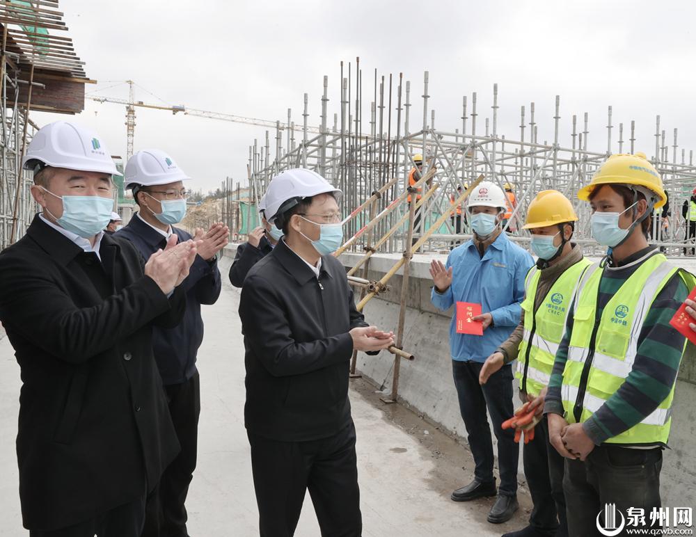 春节期间,部分企业“不停机”、项目“少停工”。在位于泉州台商投资区的新泉州东站建设工地上,工人们正抢抓施工黄金期,奋力赶进度。刘建洋走进工地,了解项目规划,察看工程进展,与工人们亲切交流,感谢大家放弃节日休息时间,加班加点奋战一线,叮嘱要在坚决守牢安全生产底线的基础上,加快施工进度,保质保量完成建设任务。