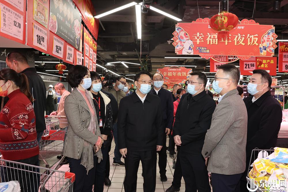 泉州商城广场新华都超市里,各类生活物品琳琅满目,前来置办年货的市民络绎不绝。刘建洋详细了解商家疫情防控措施落实情况,察看政府指定农副产品平价销售区及进口冷链食品、果蔬、肉类等档口。他叮嘱,要进一步压实属地、部门、单位、个人“四方责任”,使疫情防控常态化、无死角,保证节日期间粮油肉蛋菜等供应充足、价格平稳,让老百姓买得放心、吃得安心。