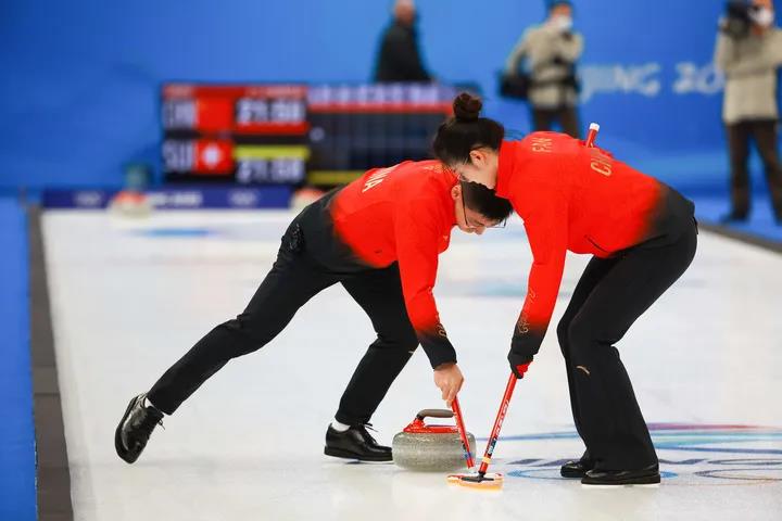 2月2日,北京冬奥会冰壶混双循环赛在北京国家游泳中心“冰立方”开赛,中国队迎战瑞士队。这是北京冬奥会首个开赛的竞赛项目。