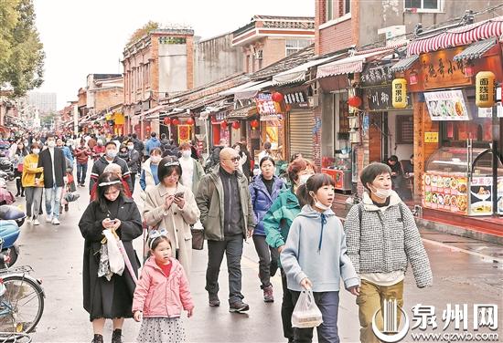 2月3日,人们在泉州市区西街游逛,感受世遗泉州的深厚历史文化底蕴。 (张九强 摄)