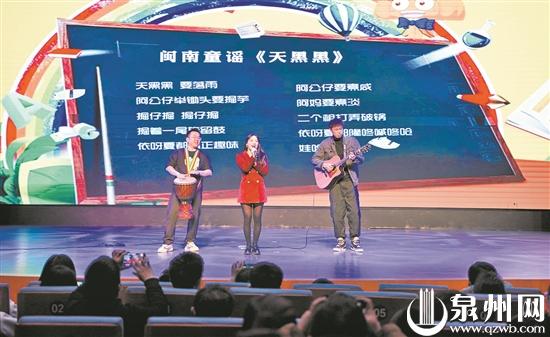“现场亲子体验的观众比较多,《天黑黑》是闽南童谣的杰出代表,深受少儿朋友们喜爱。”泉州市闽南民间歌舞传承中心歌手郑艺说。