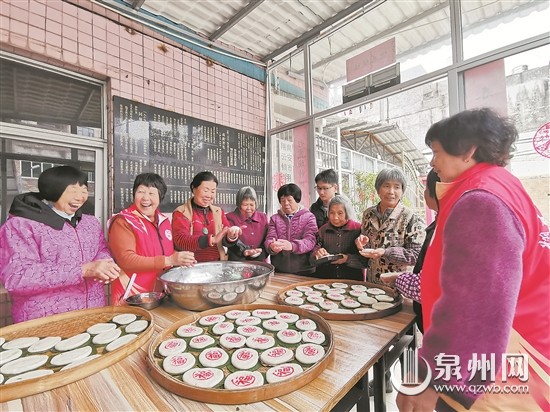 翔云镇翔云村的老人们把福文化和传统糕点融合做成“福粿”,增添了浓浓年味。(柯琳琳 张雅媚 摄)