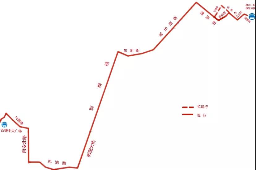 线路调整后,泉州一院城东分院往百捷中央广场方向不在途经美仙路(美仙路口、通源街口),改道东辅路、体育街。