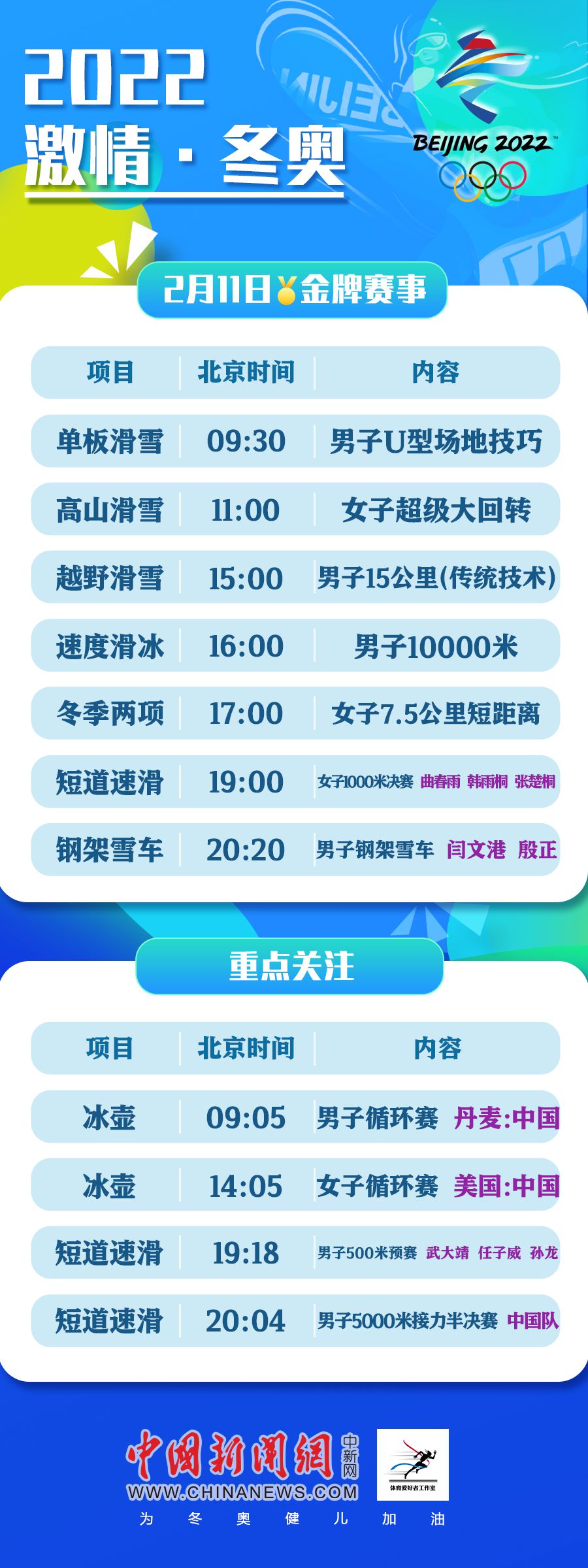 中新网2月10日电 北京冬奥会11日将产生7枚金牌,中国选手闫文港、殷正有望在男子钢架雪车赛场带来惊喜。此外,中国短道速滑队全面出击,曲春雨、韩雨桐、张楚桐将在女子1000米项目上力争佳绩,武大靖将开启男子500米的卫冕之旅。