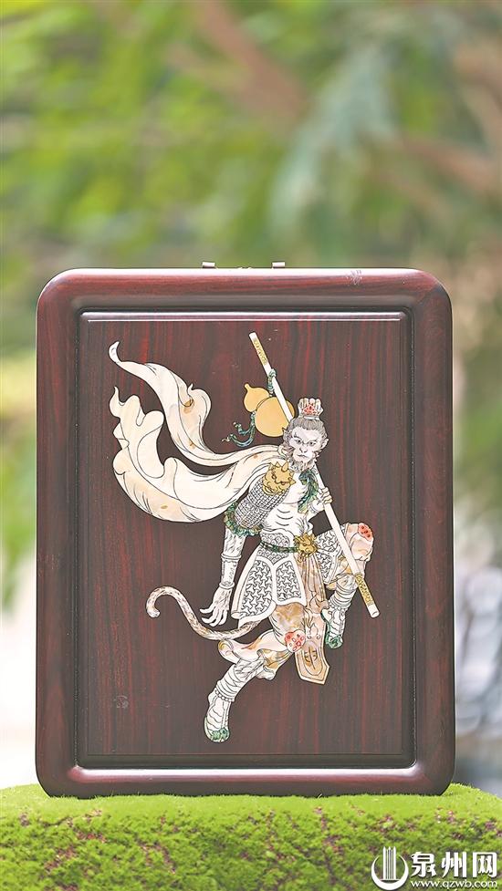 据介绍,螺钿是我国传统的装饰工艺,它通过对鲍鱼壳、珍珠母贝、螺凤壳等进行加工,根据所需的画面将螺壳打磨加工成人物、花鸟、文字等薄片,再镶嵌到工艺品的表面,从而形成强烈的视觉冲击。螺钿制作的成品纹理丰富颜色多变,并且“永不褪色”,通常被应用于漆器、家具、乐器、插屏,以及木雕一类的工艺品上。