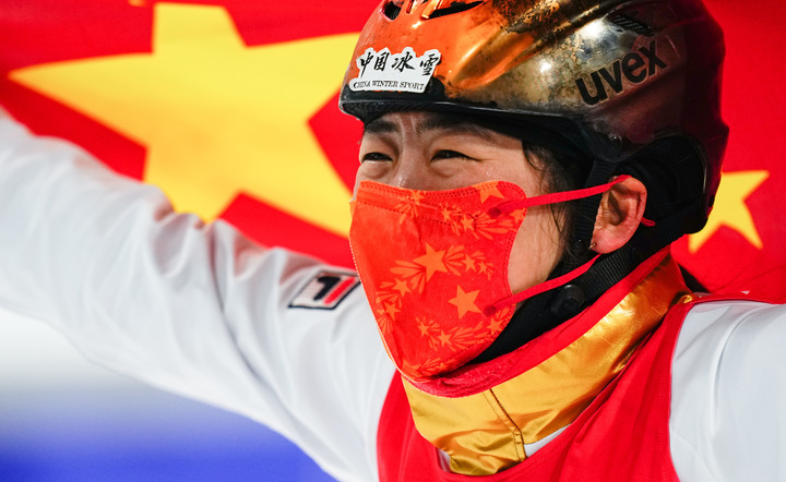 2月14日,中国选手徐梦桃夺得北京冬奥会自由式滑雪女子空中技巧冠军。新华社记者许畅摄