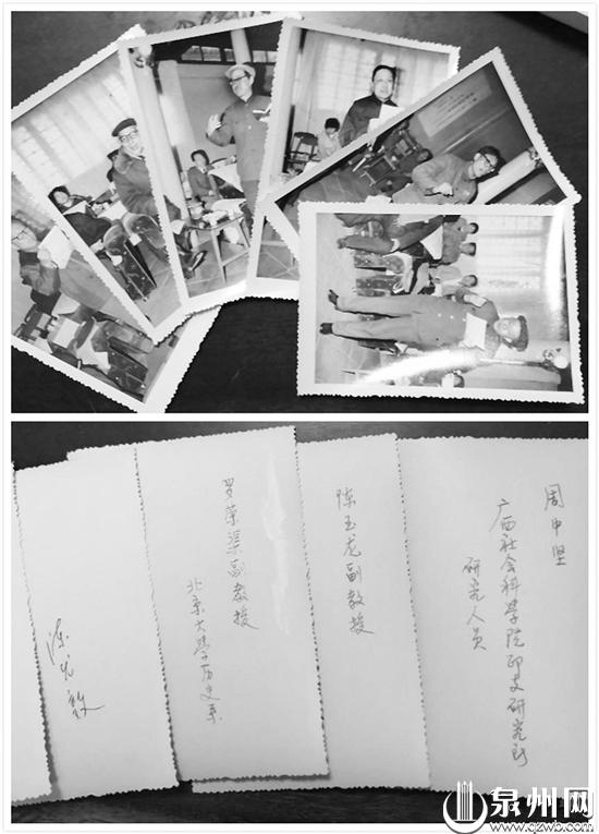 开元寺春灯诗会当年的现场照片,背面写着与会者的名字,包括来自中国社科院、北京大学历史系的专家学者。