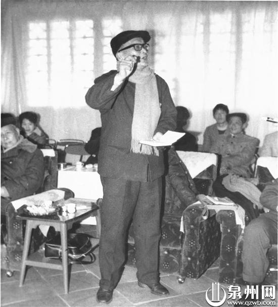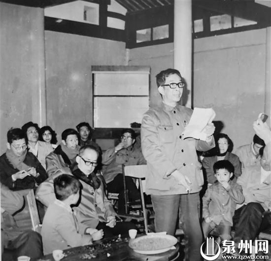 1984年元宵节,开元寺春灯诗画联欢会,泉州文管会主任陈泗东即兴作诗并吟诵。