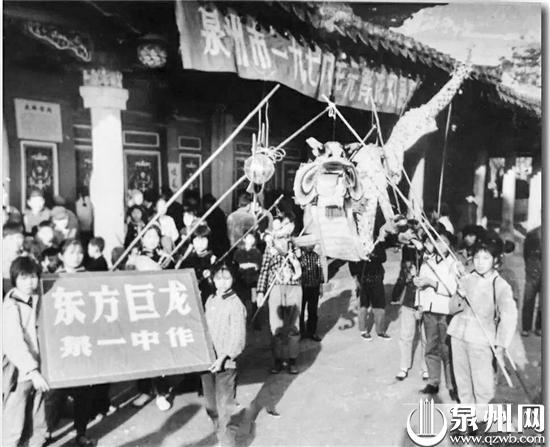 1978年开元寺内的元宵花灯展上,泉州一中制作的“东方巨龙”花灯。(蔡其呈 供图)