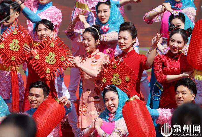 活动中,舞蹈《福星高照》、木偶戏《闹元宵》、新编南音《风打梨》、歌伴舞《领航》等精彩节目轮番登台;来自海丝沿线国家和地区的泉籍侨胞、台胞、企业家等各界代表通过视频传送了祝福。随后,省市领导共同开启“金沙筑(祝)福”,向现场侨胞、台胞和劳模代表以及观众赠送“福虎”,并前往正音书院、南音会馆,观赏了梨园戏、南音等表演。