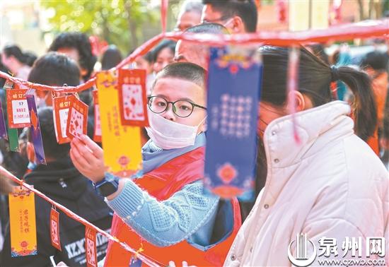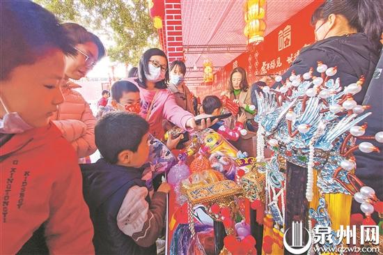 泉州网2月16日(记者 蔡紫旻)昨日,市区府文庙广场上,非遗送福区、文创集市区人来人往,这里云集了泉州特色非遗技艺、文创产品,市民游客们通过现场参观、互动体验等形式,体验泉州非遗魅力。