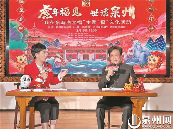 泉州网2月16日(记者 陈智勇 文/图)“‘上元小年兜’,泉州元宵节热闹程度胜似过年,泉州闹元宵就是一场‘福’文化的嘉年华。”昨日,在市区府文庙广场“虎年福见·世遗泉州:我在东海送全福”主题“福”文化活动主会场旁的正音书院举行的直播活动中,国家一级编剧、泉州历史文化中心副理事长王景贤畅谈“福”文化和泉州踩街、花灯制作、乞龟等民俗文化,让广大市民进一步感受泉州文化独特的魅力和韵味。