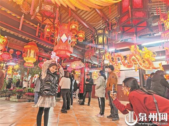 泉州网2月16日(陈灵 黄耿煌 陈海波 文/图)又是一年元宵时,传承600多年的南安丰州燕山黄氏元宵灯会如约而至,从早到晚,前来赏灯的市民络绎不绝。今年,为了做好疫情防控工作,丰州燕山黄氏家庙、桃源傅氏宗祠均实行人流量控制,取消了踩街、搏七星灯等传统活动,但仍保留了元宵灯会,供市民赏灯、钻灯脚、折花枝。
