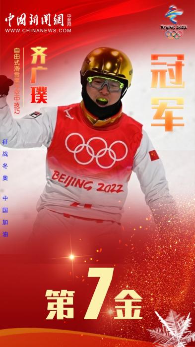 中新网客户端2月16日电 在16日晚进行的北京冬奥会自由式滑雪男子空中技巧决赛中,31岁的中国选手齐广璞技压群雄,如愿摘得金牌。这是中国体育代表团在本届冬奥会上获得的第7枚金牌,继续刷新着自身冬奥会最佳成绩。老骥伏枥,志在千里。恭喜齐广璞!