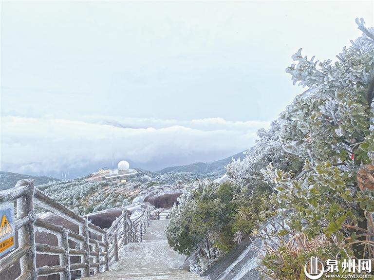 泉州网2月21日讯 (记者吴志明 陈明华)昨日,泉州市民的朋友圈被雨雾凇、下雪刷屏:德化九仙山、石牛山又是一片“银装素裹”,均出现下雪和雨雾凇景观,安溪大坪马峰山出现雨夹雪和雨凇,祥华乡佛耳山出现雾凇,永春县呈祥乡、天马山出现雨凇,泉港笔架山出现雨雾凇,南安翔云镇下起冰雨……
