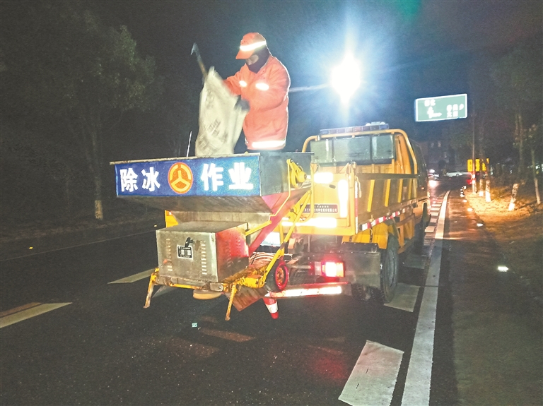 严寒之下,我市一些山区公路可能出现结冰现象,尤其是德化县。20日上午,德化一些山区乡镇出现雨夹雪气象,吸引了许多游客前往观赏。在游客欢欣筹划赏景时,德化公路人已提前行动。19日晚,驻守各公路站的德化公路人顶寒风冒冷雨,连夜加强公路巡查,重点检查易结冰路段的路况,在易结冰路段铺撒融雪剂以防结冰,保障通行安全。