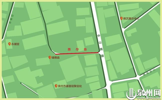 惠存巷位于泉州城南,东起中山南路,西抵楼仔下巷。因巷内曾有一座惠存庙而命名。