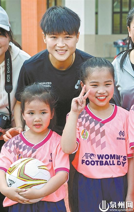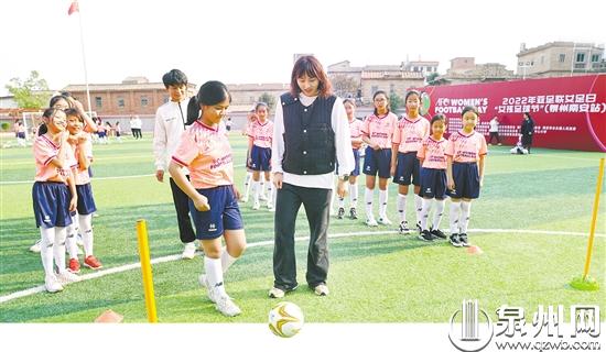 泉州网3月4日讯 (记者许钹钹 王柏峰 实习生陈诗滢 文/图)3月3日下午,2022年亚足联女足日“女孩足球节”泉州南安站活动在南安水头中心小学举行。中国国家女子足球队队员王晓雪、马君现身南安。绿茵场上,王晓雪向足球女孩们传授踢球要领,马君则勉励她们:“如果你热爱足球,那么保持热爱,永不言弃!”