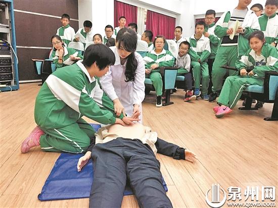 记者了解到,为进一步普及应急救护知识技能,增强学校学生、教职工及后勤人员应对突发事件的自救互救能力,从2014年起,福建医科大学附属第二医院与各校联合举办“急救知识进校园”为主题的科普宣传活动。鲤城、丰泽、洛江、南安……从幼儿园到中小学再到大学,8年来,授课团队共开展了63次校园急救知识宣传活动。