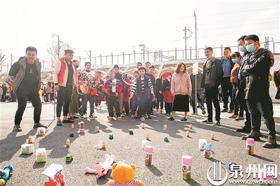 泉州网3月7日讯 (记者黄耿煌 陈灵 通讯员陈海波 文/图)“套住了!套住了!”“往这边、往这边,错啦、错啦!”……日前,泉州动车站旁的南安丰州镇燎原村丰美燎原小广场上,丰州镇“与邻为善,幸福相伴”首届邻里节热闹上演,各项趣味运动引得群众欢声笑语不停歇。