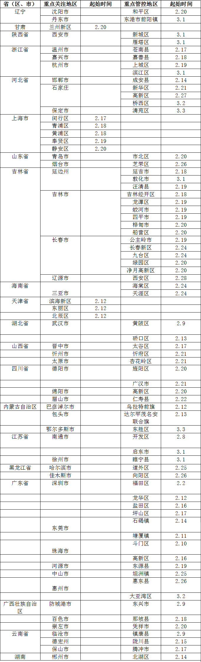 泉州网3月7日讯(记者 张妱渒)2022年3月6日起,山东省青岛莱西市龙口东路18号安居小区调整为高风险地区;6日起,云南省德宏州瑞丽市勐卯街道团结村委会弄喊二村民小组、姐岗村委会帕色村民小组、卯相社区五星商贸城,山东省青岛莱西市龙水社区服务中心南龙湾庄自然村、龙水社区服务中心焦格庄自然村、院上镇中心中学,7日起,江苏省连云港市海州区龙河小区25号楼、悦城国际9栋、许庄村杨圩北队75号、宝翔财富广场3号楼、极美苑2号楼,陕西省西安市曲江新区曲江池东路988号凯悦酒店、新城区长乐中路街道汉庭酒店(万寿路地铁站店)、碑林区文艺路街道文北二社区金色城市小区1号楼,内蒙古自治区呼和浩特市赛罕区榆林镇陶卜齐村调整为中风险地区;6日起,江苏省苏州市张家港市杨舍镇新航花苑18幢,7日起,内蒙古自治区呼和浩特市新城区西街街道艺术厅北街社区、迎新路街道新春社区,回民区攸攸板镇倘不浪社区,玉泉区兴隆巷街道四里营东社区、鄂尔多斯路街道前八里庄村、昭君路街道天骄社区,赛罕区昭乌达南路街道锦绣社区、榆林镇东干丈村,土左旗白庙子镇白庙子村,四川省成都天府新区华阳街道伏龙社区丽景苑小区调整为低风险区。