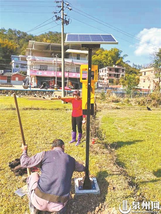 泉州网3月8日讯 (记者杨泳红 通讯员庄艳芳 林泗海 文/图)近日,每当夜幕降临,南安码头镇多个乡村的稻田里就会亮起一盏盏蓝紫色的灯。这是南安为推广绿色防控技术,为村民免费安装的太阳能杀虫灯。白天,它们是装饰稻田的一道道风景,夜晚则化身成一个个诱捕害虫的利器。