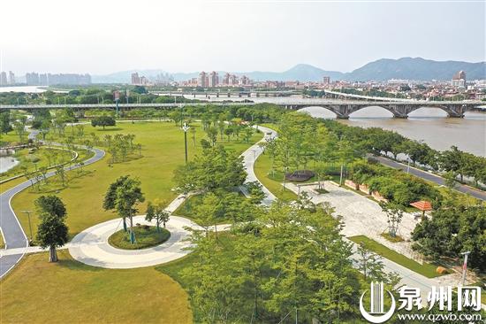 全长28.5公里的“一山一水”慢行系统,也是晋江园林绿化中独特的手笔。这条休闲绿色走廊,南起灵源山,经罗裳山、华表山、八仙山公园、晋阳湖公园、绿洲公园、九十九溪浦沟河,最后到晋江出海口,多个公园绿地和山水景观串珠成线,形成可圈点、有特色的生态连绵带。